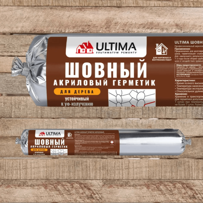 Герметик шовный для дерева Ultima на акриловой основе используется для герметизации швов в деревянном доме, бане, срубе. Для заделки трещин. Эксплуатируется как снаружи так и внутри помещения.