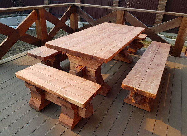 деревянной мебели на улице. Каждый из них обладает своими особыми